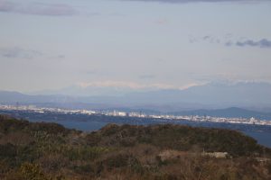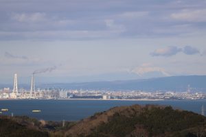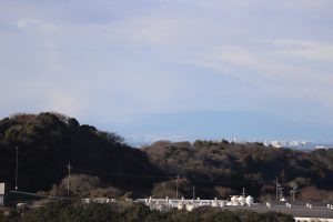 富士山、望遠レンズで見れたのですが肉眼だとわかりにくいです。